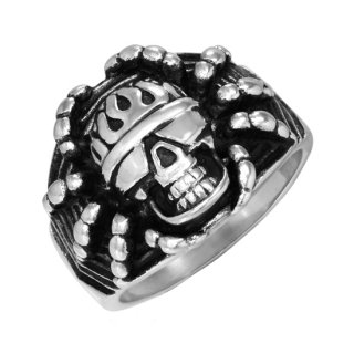 Bague homme acier tête de mort Biker avec pattes d'araignée