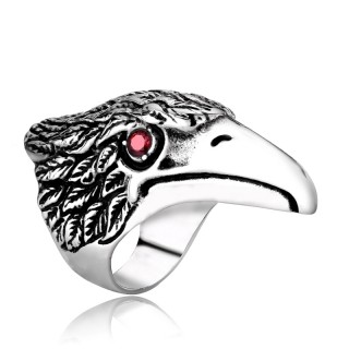 Bague homme biker en acier à tête d'aigle aux yeux rouges