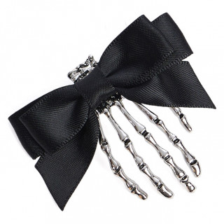Barette à cheveux gothique noeud papillon noir à main squelette