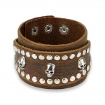 Bracelet en cuir noir à bande ovale rivetée avec inserts tête de mort
