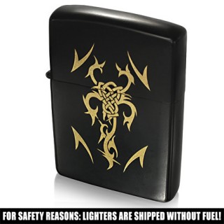 Briquet tempête noir avec croix tribale dorée