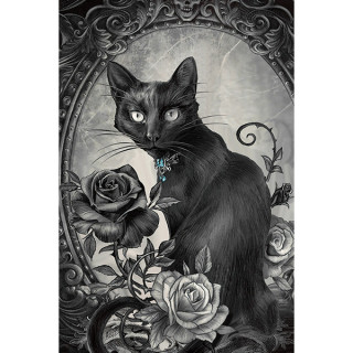 Carte postale gothique Effets 3D à chat noir et roses - Alchemy