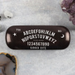 Cette trousse d'exception est conçue en polyuréthane (plastique) qui protège l'extérieur et en velours raffiné à l'intérieur. Sur le dessus de la boîte, vous trouverez un design qui vous rappellera vos meilleures séances de spiritisme. À gauche, la réponse « yes » ainsi qu'une étoile. À droite, la mention « no », accompagnée d'un croissant de lune. Enfin, au milieu l'alphabet, les chiffres de 0 à 9, ainsi que la salutation « Good Bye » que l'on réserve à la fin d'un entretien fantomatique. Puisque nous sommes prudents, l'instruction « Use with caution » a été inscrite sur la coque, vous appelant à faire preuve de vigilance avec les forces de l'Au-Delà. Ce modèle répond à des dimensions standards, de 16 cm par 6,5 cm de largeur pour une profondeur de 4 cm.