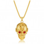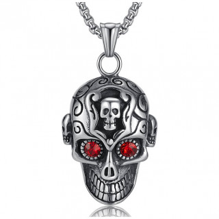Pendentif homme acier tête de mort à crane sur le front et yeux rouges