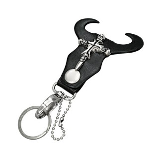 Porte-clés cuir à cornes avec épée et cranes