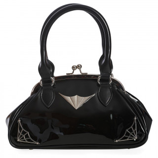 Sac à main verni noir à décorations toiles d'araignée