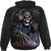 Au centre du vêtement, un crâne, paré d'un casque audio, trône majestueusement, ressemblant à un guerrier moderne plongé au coeur de l'action. Les touches de clavier et les câbles l'entourant ne sont là que pour témoigner de son engagement sans faille dans l'arène ultime de l'informatique. L'arrière du sweat fait écho à cet esprit, avec le même crâne illuminé par l'émanation rougeoyante de l'écran de son puissant ordinateur. Le style est clairement gothique, sombre et énergique.