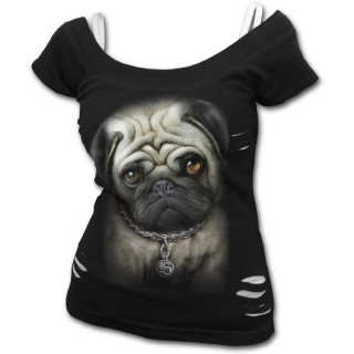 T-shirt débardeur (2en1) femme gothique à chien bulldog avec piercing au nez