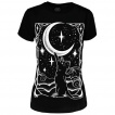 T-shirt femme chat noir à ailes de chauve-souris jouant avec la lune - RESTYLE