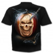 Articulé autour d'un style résolument gothique et rock, ce vêtement au tissu 100% coton caresse la peau de son toucher doux, contrastant magnifiquement avec les représentations macabres qui le décorent. Sa couleur, telle la nuit la plus obscure, rend gloire à des motifs brillamment terrifiants et fantastiques.