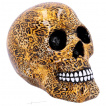 Ce crâne déco, d'une taille imposante de 18 cm, présente un revêtement jaune vibrante parsemé de taches sombres, reproduisant fidèlement le mystique pelage du léopard. Les orbites, peints en noir d'encre, se perdent dans le néant, dégageant un sentiment d'incomplétude et de solitude spectrale, renforcé par le blanc des dents exposées qui contraste brutalement avec le jaune tacheté.